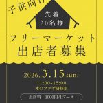 ※開催概要一部更新しました。木のプラザ研修室にてフリーマーケットを開催します。出展者枠が残りわずかとなっておりますのでご希望の方は以下の概要をお読みください。みなさんのご参加をお待ちしております。]]>
