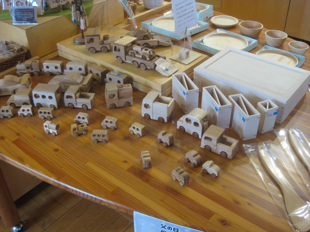 ほかにも車種が豊富なクルマのオモチャは丁寧にやすりがけがされており、丸いデザインがかわいらしいです。