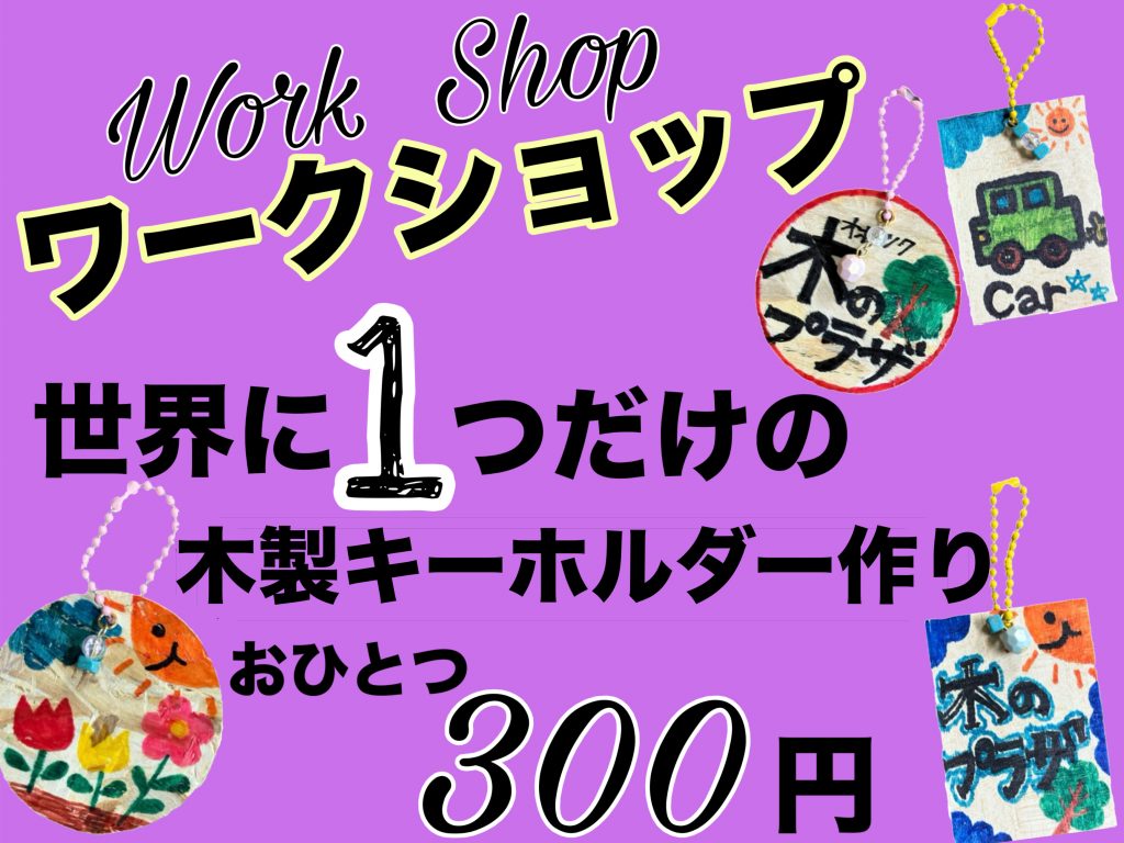 木の板に絵を描いて世界で一つだけの素敵なキーホルダーを作れますよ。